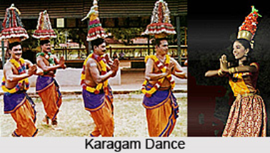 Karagam dance is a folk dance performed in the Tamil Nadu state of India. It is believed that Karagam is originated in Thanjavur, a village in Tamil Nadu. The villagers perform this dance in praise of the rain goddess "Mari Amman" and the river goddess "Gangai Amman" as a part of their custom. The idol of Mariamman is carried in procession. This ritual is performed in the month of August. The dance is very popular in Tamil Nadu for its intricate movements and the way dancers balance pot on their heads. Thousands of people comprising local as well as tourist witness this dance Performance of Karagam Dance